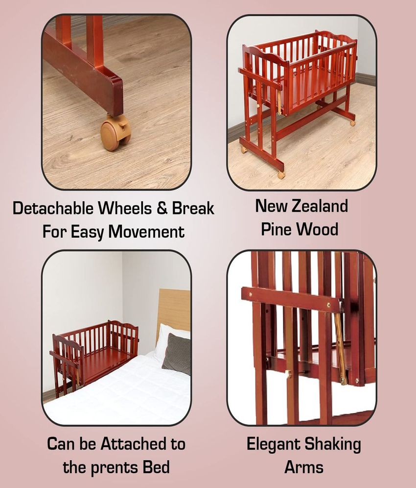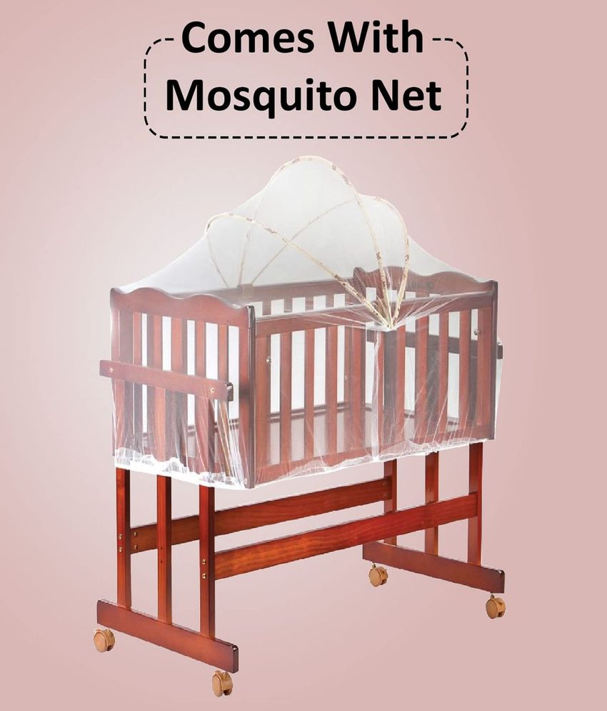 LuvLap C - 50 Baby cot with cradle safety protector is designed for little babies to protect them from falling down. It is Certified as per European Standards to guarantee the safety of your baby. The Cot can easily be converted into cradle. It comes with Mosqito net, Reversible Wheels with brakes & extendable front bar. The fabric-wrapped cot base is robust with good air flow. Recommended age - 0 - 12 Months & weght up to 15 Kgs