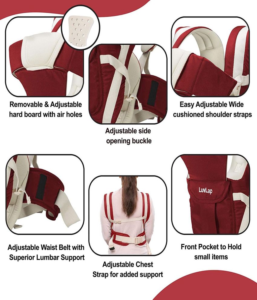 Now take your baby out of the house without any hassle or worries in this convenient LuvLap baby carrier. It is great for your baby to explore the surroundings safely while feeling emotionally secure. Made of premium quality breathable fabric, with multi carrying positions and adjustable belts make sure both baby and parent is most comfortable. Close carrying has been scientifically proven to help your baby grow up to be secure, intelligent, family oriented and happy. So whether it is to do small chores or to meet friends, you can take your baby out with you every time.