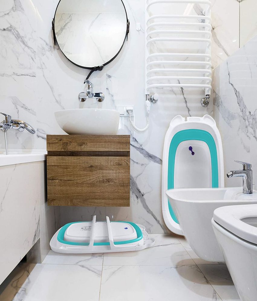 Luvlap baby splash & fold up bathtub is suitable for newborn babies. It is Certified as per European Standards: EN 71. Its temperature Sensitive Water Plug changes color from Blue to White if water becomes hot. It is made of BPA-free eco-friendly, Food-Grade & non-toxic material. Ergonomic and spacious design helps baby sit comfortably and securely while bathing