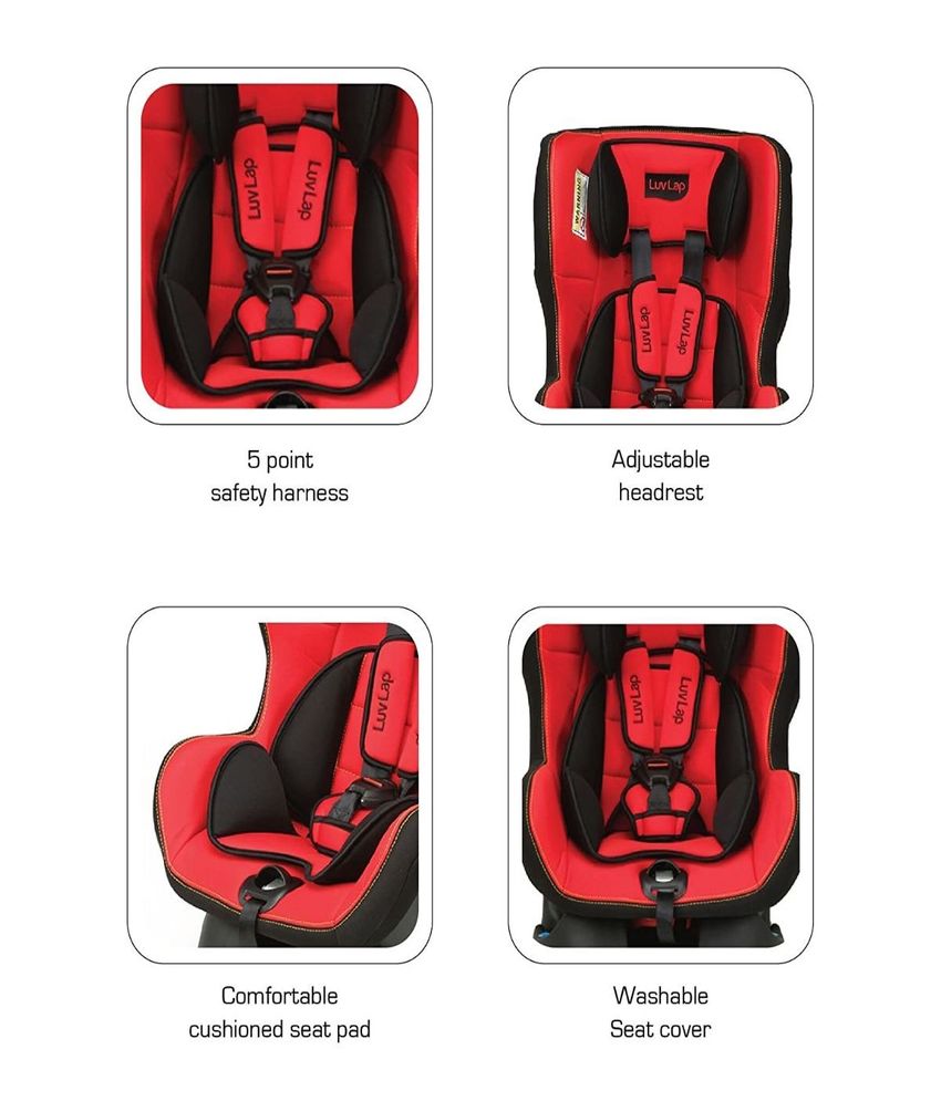 Drive your baby around in style, while keeping him/her safe and comfortable. This LuvLap Rearward & Front Facing Baby Car Seat is highly comfortable, easy to install and simple to use. It's 5 point safety harness helps keep baby safe and comfortable, the extra soft padding provides your baby comfort and protects him/her from feeling the bumps on the road.Make your car childproof with the Luvlap Sport Car Seat.