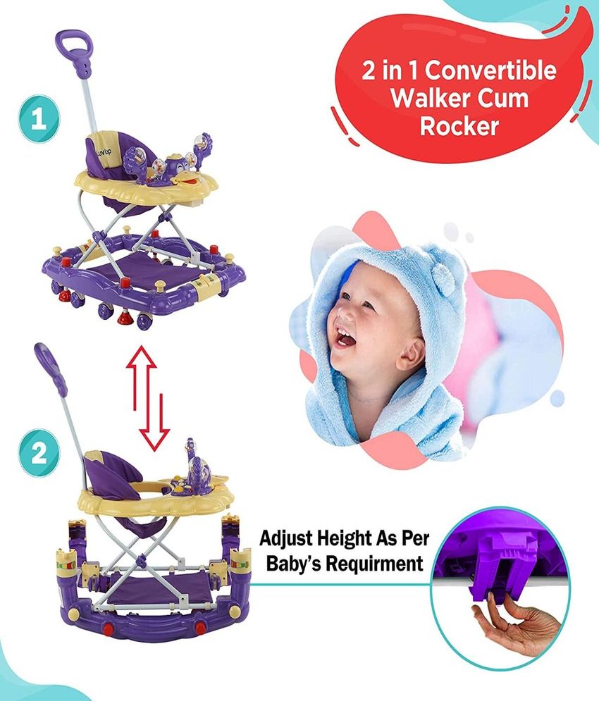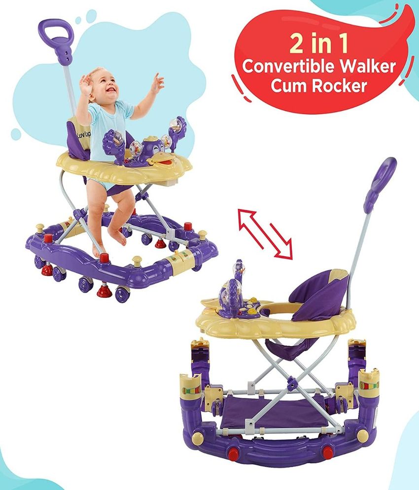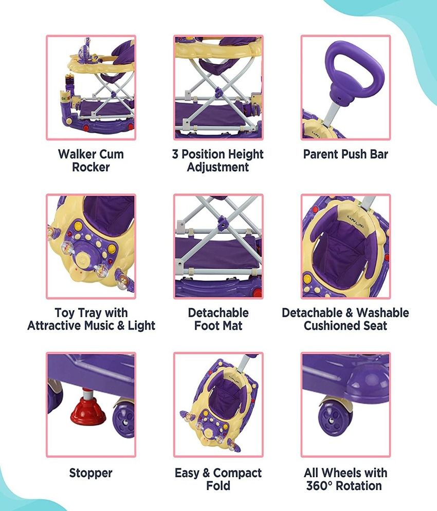 Make the first steps of your little one safe and more fun with this LuvLap walker. If you're busy cooking and not watching your little one, you can use the Stopper to ensure that your baby doesn't stroll off. While the Attractive Toy Tray keeps him/her engaged, the Push Bar lets you move this baby walker without straining yourself. This walker also comes with a padded seat that's easily washable.