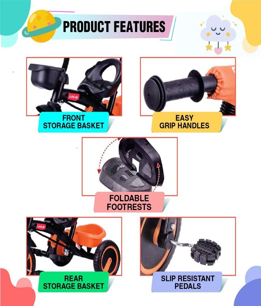 LuvLap Trikes are designed with utmost care to let your toddlers get their first taste of riding their own set of wheels. Built with High Quality materials and boasting a comfortable ergonomic design, these tricycles are gong to be the start of the many wonderful memories your child will make.