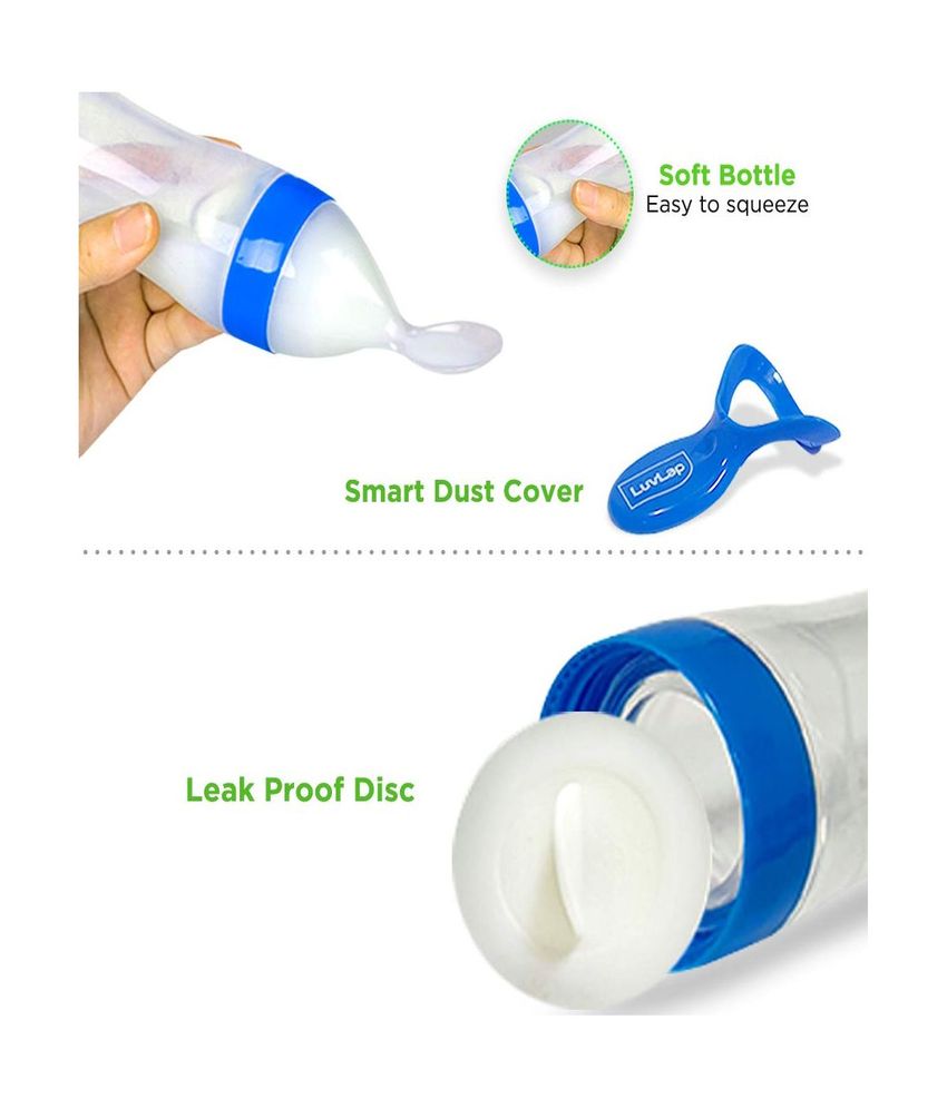 LuvLap Feeding Spoon with Squeezy food Grade Silicone Feeder bottle , For Infant Baby, 90ml, BPA Free,Blue
