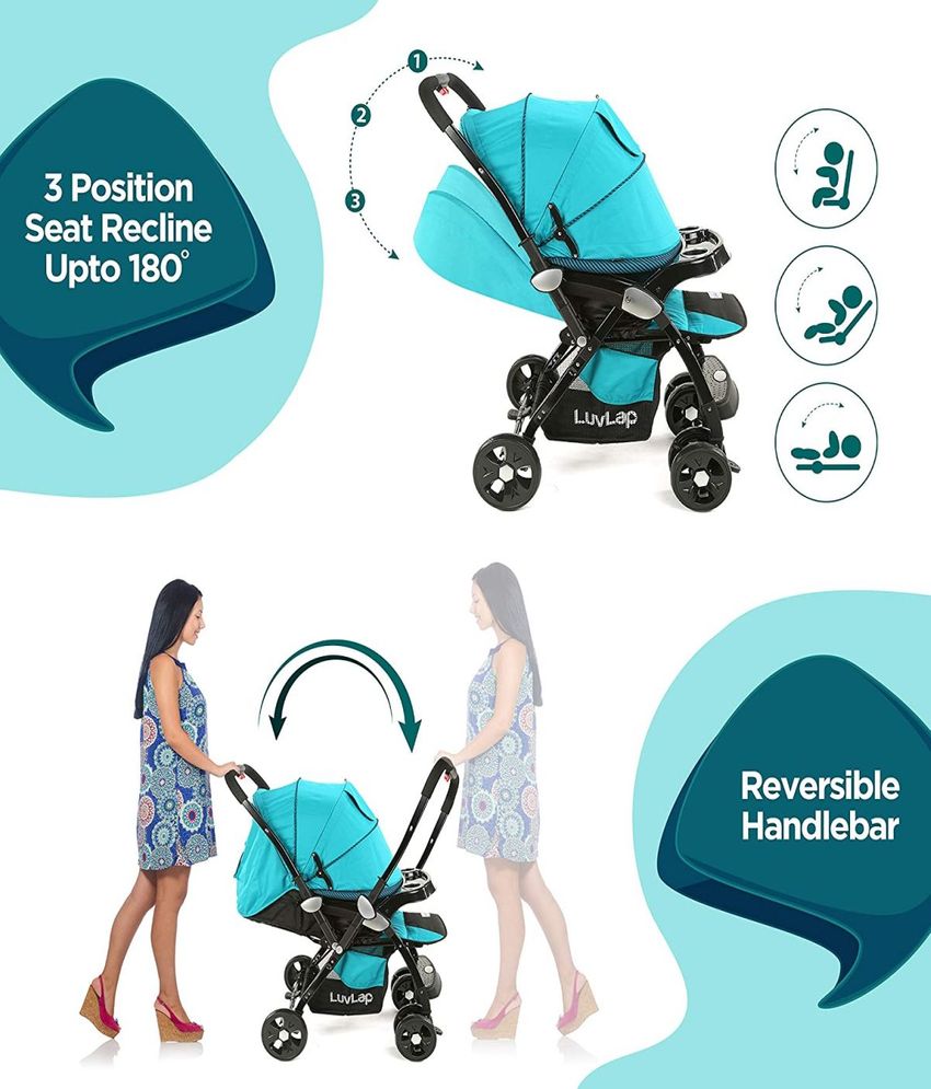 Now your baby's safety is our priority. LuvLap Baby Stroller is certified as per the European Standard EN 1888 to guarantee best in class safety of your baby. Galaxy stroller makes sure that your child is comfortable and secure while roaming around and enjoys the sights. It has unique features that makes it more reliable such as a 5 point safety Harness helps keep baby safe and comfortable in sitting or sleeping positions, 3-position Seat Recline, Reversible Handle Bar, Detachable Food Tray, Front swivel Wheels with Lock, Front & Rear Wheels Brake, Washable soft Cushined Seat, Extendable Canopy with Lock, Adjustable Leg Rest with Wide Foot Support, Huge Storage basket,Back Pocket & Looking window to keep a watch on your baby while Strolling. It is recommended for children between age 0 to 36 months weighing upto 15 kgs.