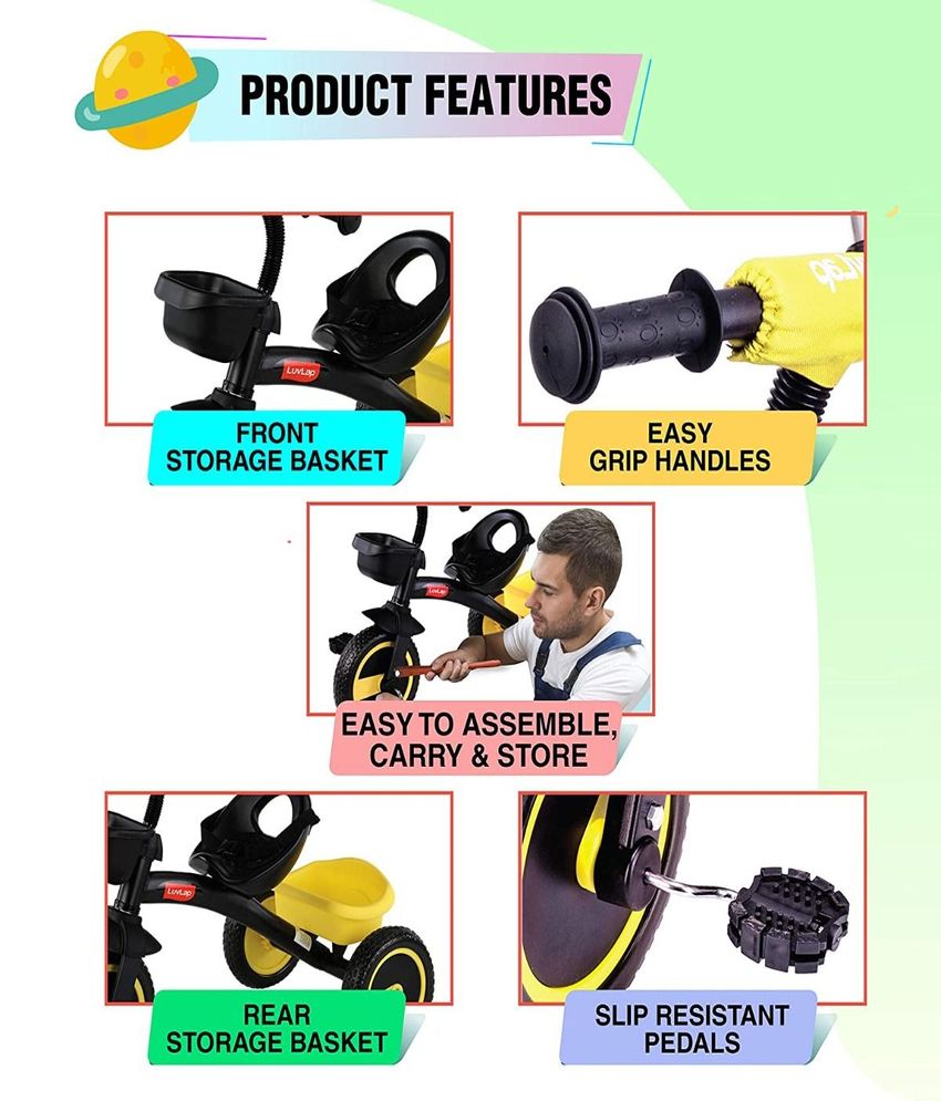 LuvLap Trikes are designed with utmost care to let your toddlers get their first taste of riding their own set of wheels. Built with High Quality materials and boasting a comfortable ergonomic design, these tricycles are gong to be the start of the many wonderful memories your child will make