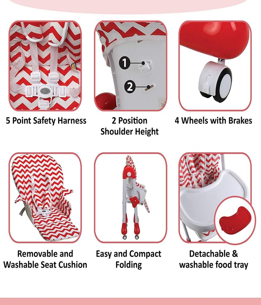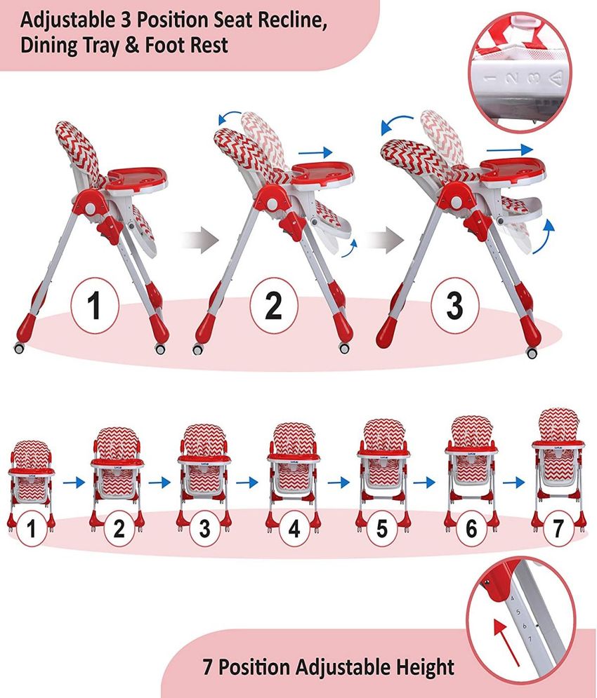 Feed your baby with utmost comfort and ease with LuvLap Royal High Chair. The 5 point safety harness keeps your baby secure and the 7 level height adjustment makes it comfortable to seat him/her. It is equipped with wheels for easy movement across rooms.