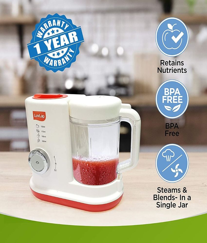 When it?s time to introduce solid foods to your baby, trust the LuvLap Royal Steamer & Blender. It creates delicious baby food ranging from purees to thick, chunky pastes. Steaming ensures all the nutrients and taste of the food are retained. With its effortless operation, the 2-in-1 Steamer Blender from LuvLap makes life extremely simple for new parents.