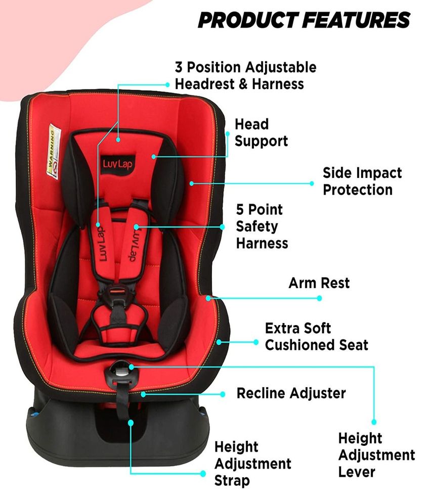 Drive your baby around in style, while keeping him/her safe and comfortable. This LuvLap Rearward & Front Facing Baby Car Seat is highly comfortable, easy to install and simple to use. It's 5 point safety harness helps keep baby safe and comfortable, the extra soft padding provides your baby comfort and protects him/her from feeling the bumps on the road.Make your car childproof with the Luvlap Sport Car Seat.