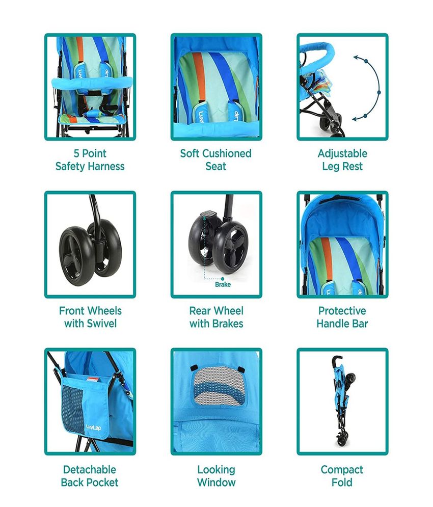 LuvLap Buggies are a light & compact travel companion for those magical joyrides with your baby or toddler. Tested & Approved by Indian mothers, our buggies conform to the highest performance standards. So don?t think twice on investing in a LuvLap Buggy. Your next adventure with your chid awaits you.